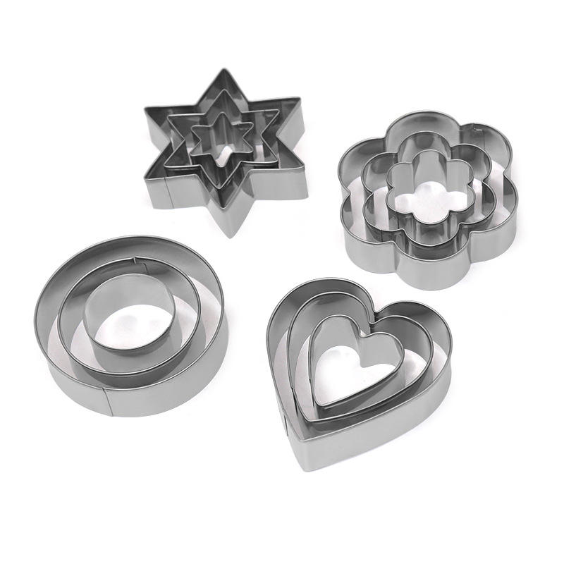 Ensemble de moules à pâtisserie robustes en acier inoxydable, 12 pièces, emporte-pièces en forme de cœur, d'étoile et de fleur pour des biscuits et gâteaux de Noël aux formes uniformes