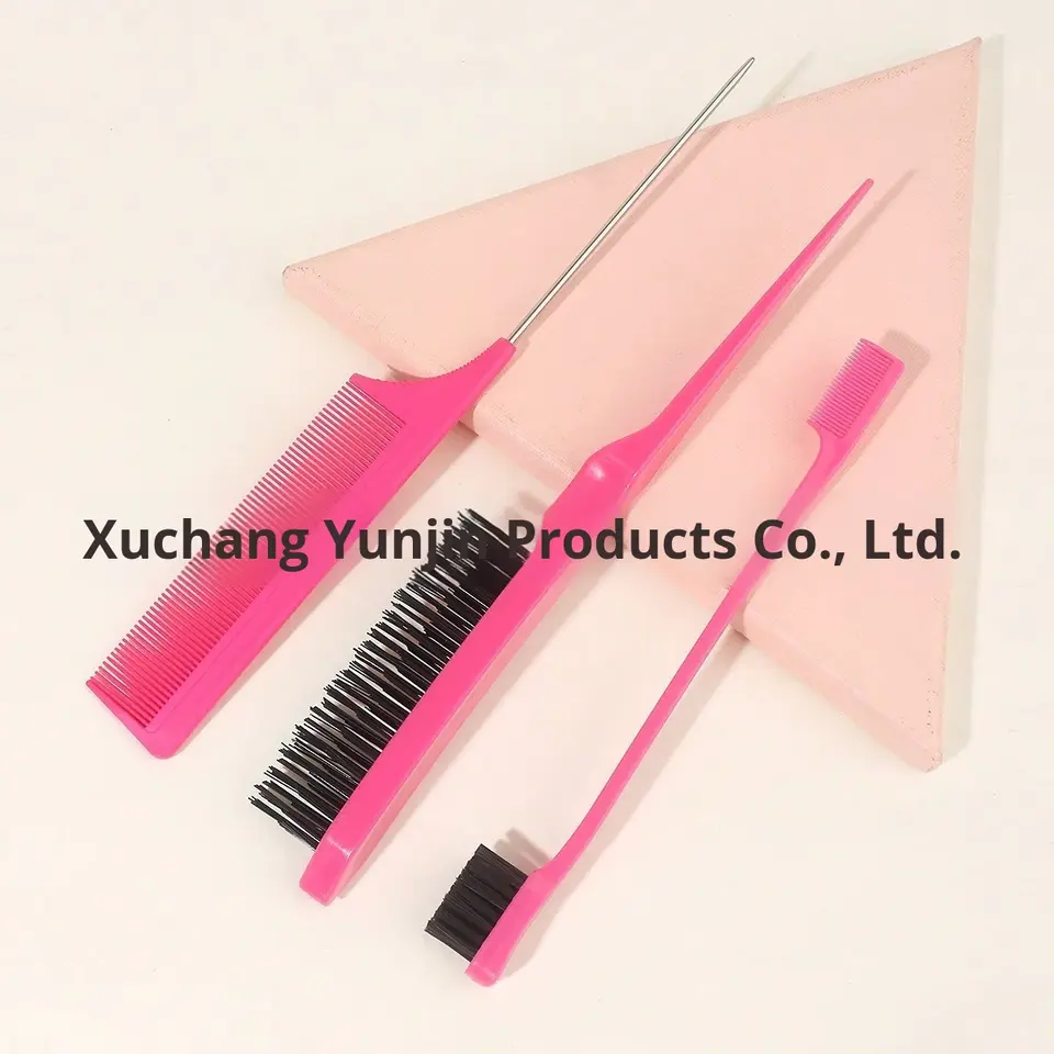 Ensemble de trois peignes pour coloration capillaire à l'huile, couleur unie, brosse pour mèches, brosse à sourcils, peignes à queue pointue pour la séparation des cheveux, 22x3cm