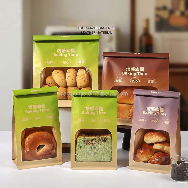 Sac d'emballage auto-adhésif personnalisé en papier kraft classique à huit côtés scellés pour pain grillé et sushi