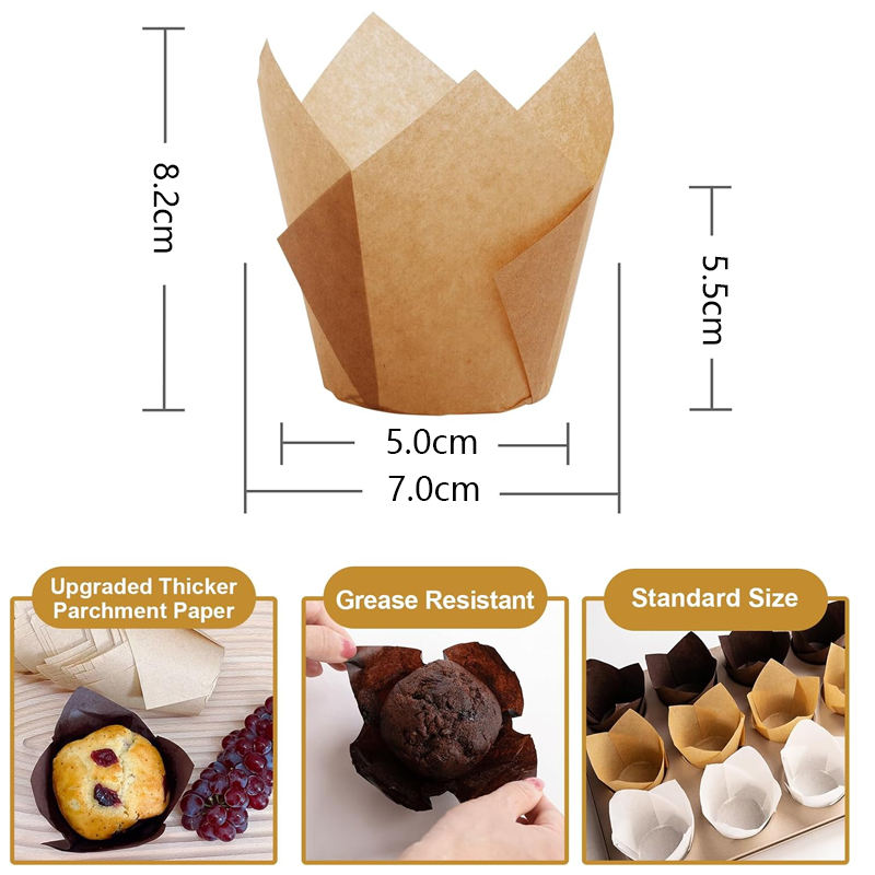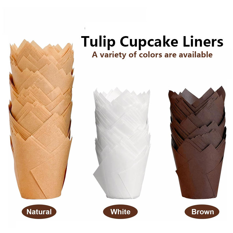 Outils de Cuisson et Pâtisserie Gobelets à Cupcakes Tulipe Jetables Marron et Blanc en Papier