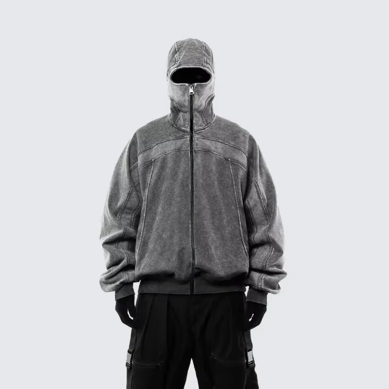 Cagoule sweat à capuche zippé lavé épissage conception noir gris Ninja pull gothique haute rue unisexe ample Streetwear