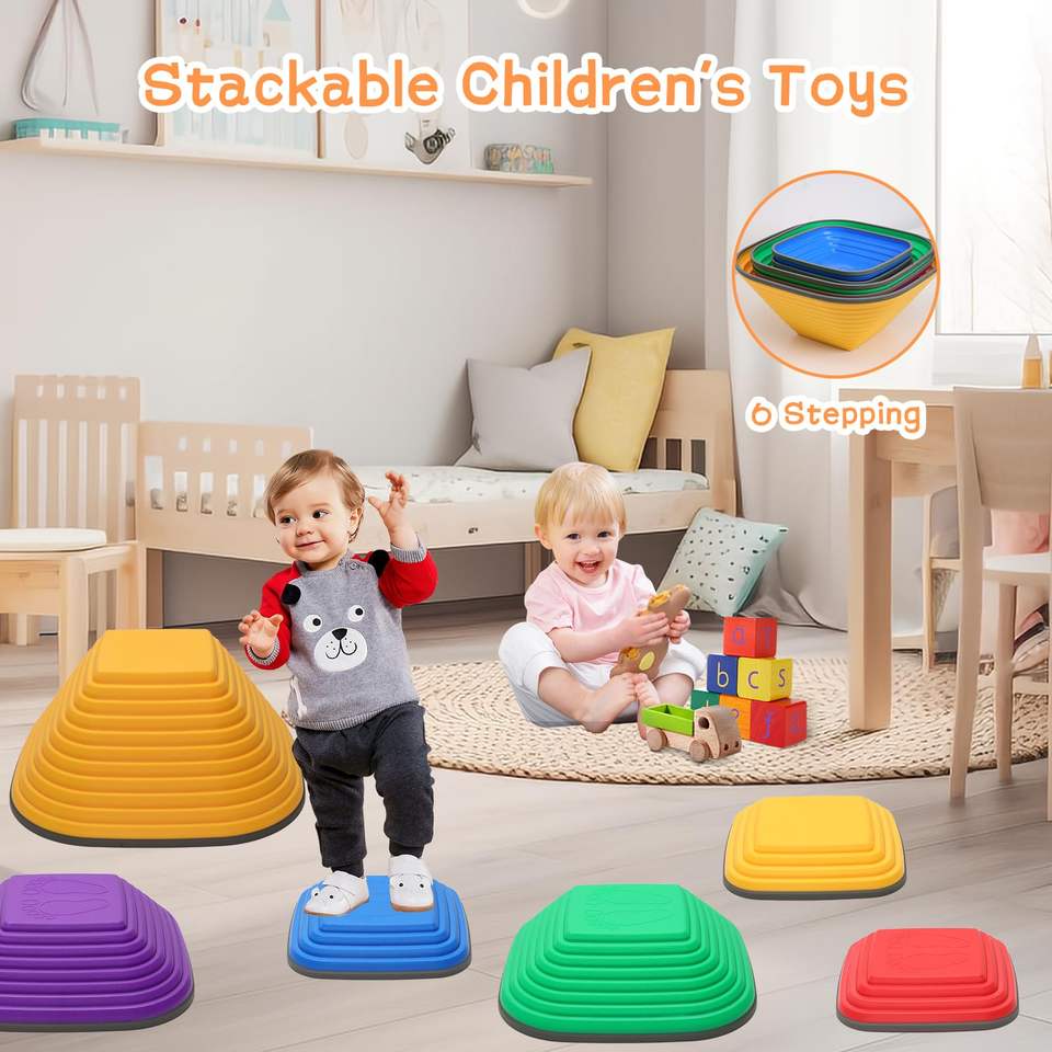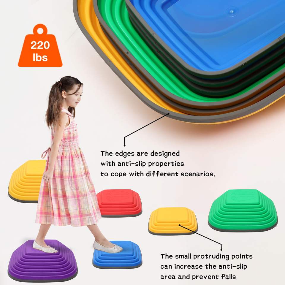 Pierres d'équilibre pour enfants, pierres antidérapantes, jouets pour l'autisme, pierres de saut en plastique, blocs d'équilibre, parcours d'obstacles, jeux
