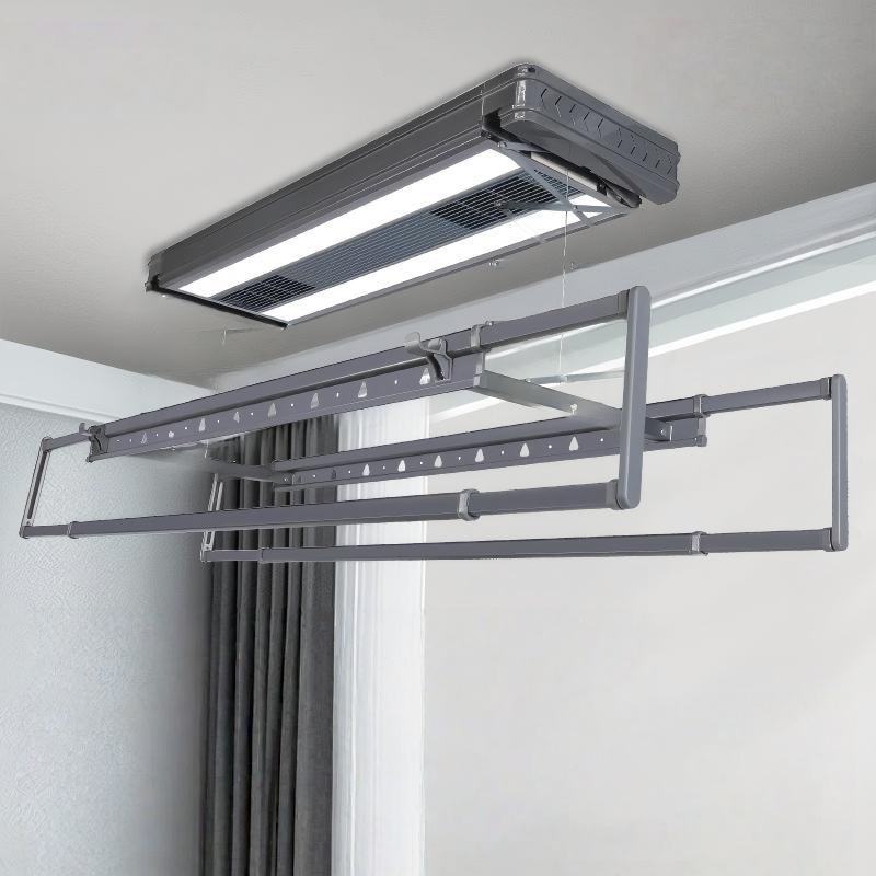 Séchoir électrique intelligent pour balcon et salle de bain avec télécommande vocale, éclairage et levage automatique, séchage à l'air