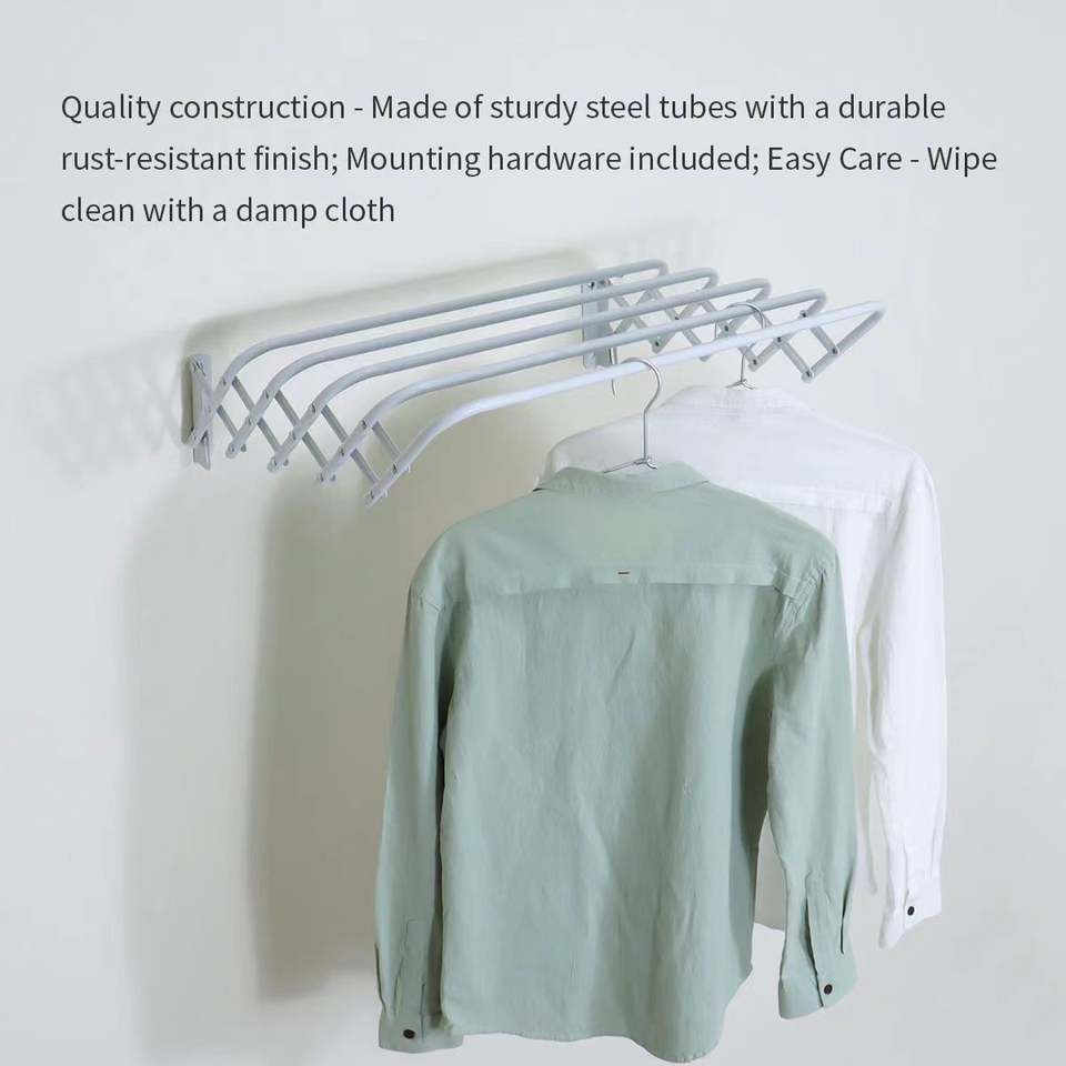 Séchoir à linge mural télescopique pliable à 5 niveaux en métal pour balcon, design écologique et invisible