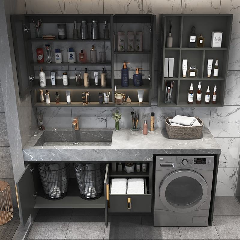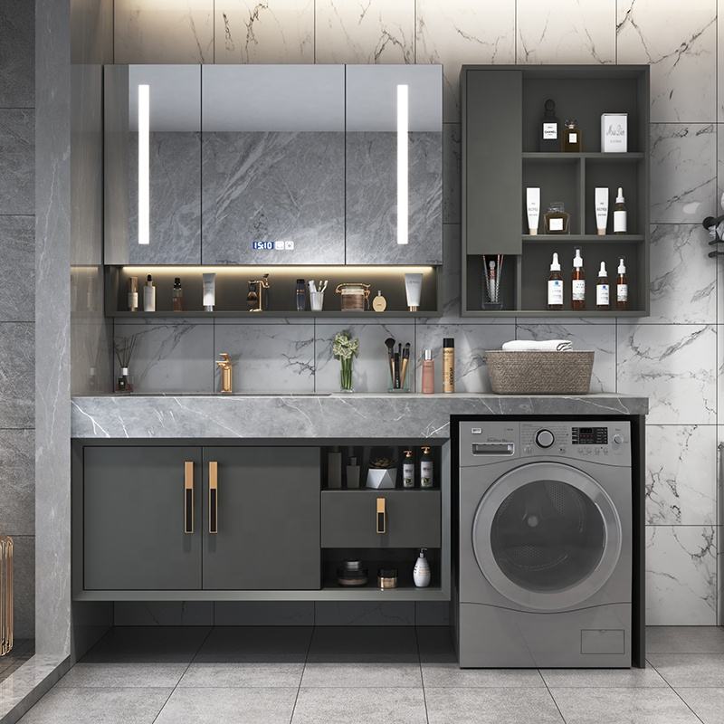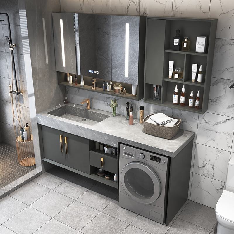Meuble de salle de bain intégré pour machine à laver sur balcon, meuble de salle de bain de luxe léger, meuble de lavabo de toilette, produit personnalisé