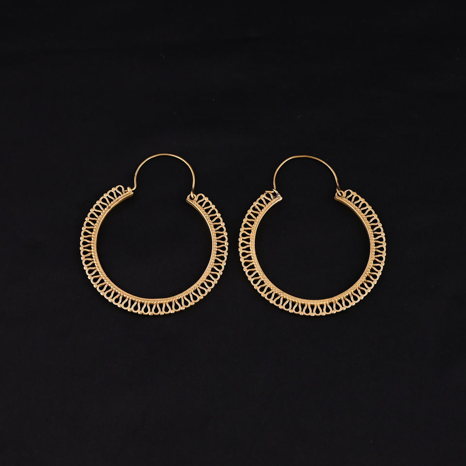 name or words:Balinese Gold-Plated Brass Hoop Earrings