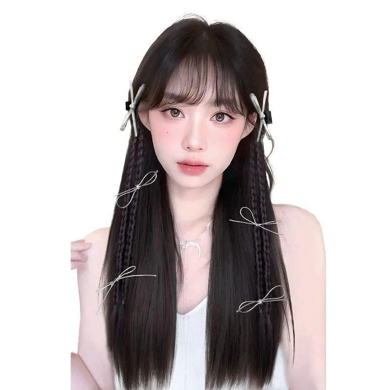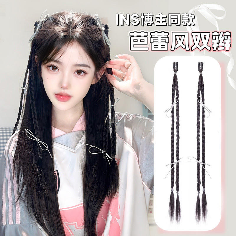 Queue de cheval double tressée style ballet avec pinces, accessoire capillaire en fibre haute température pour usage quotidien, style chinois moderne