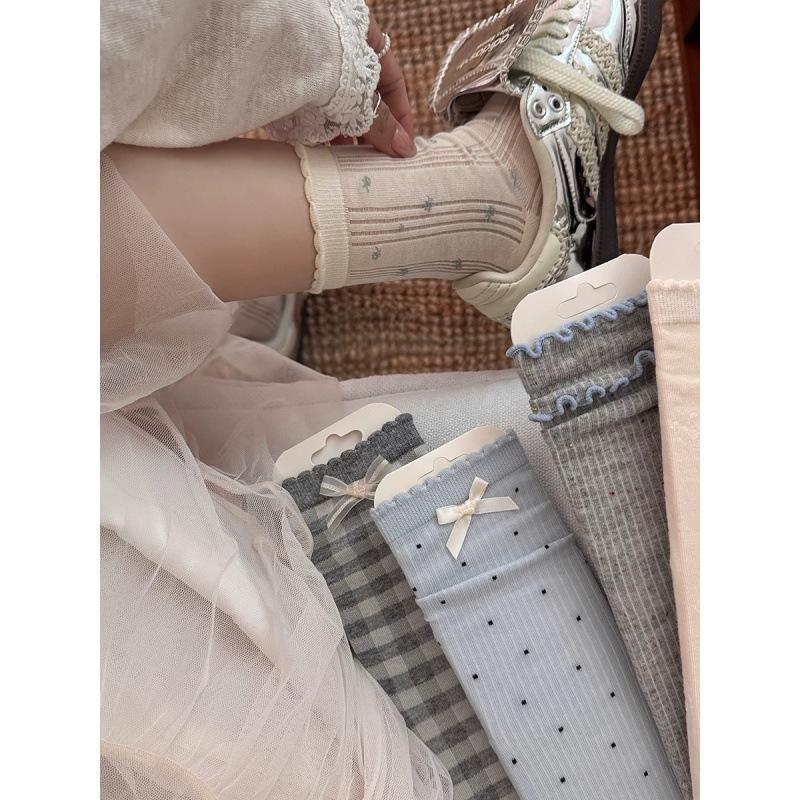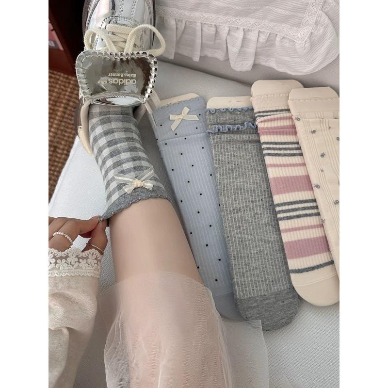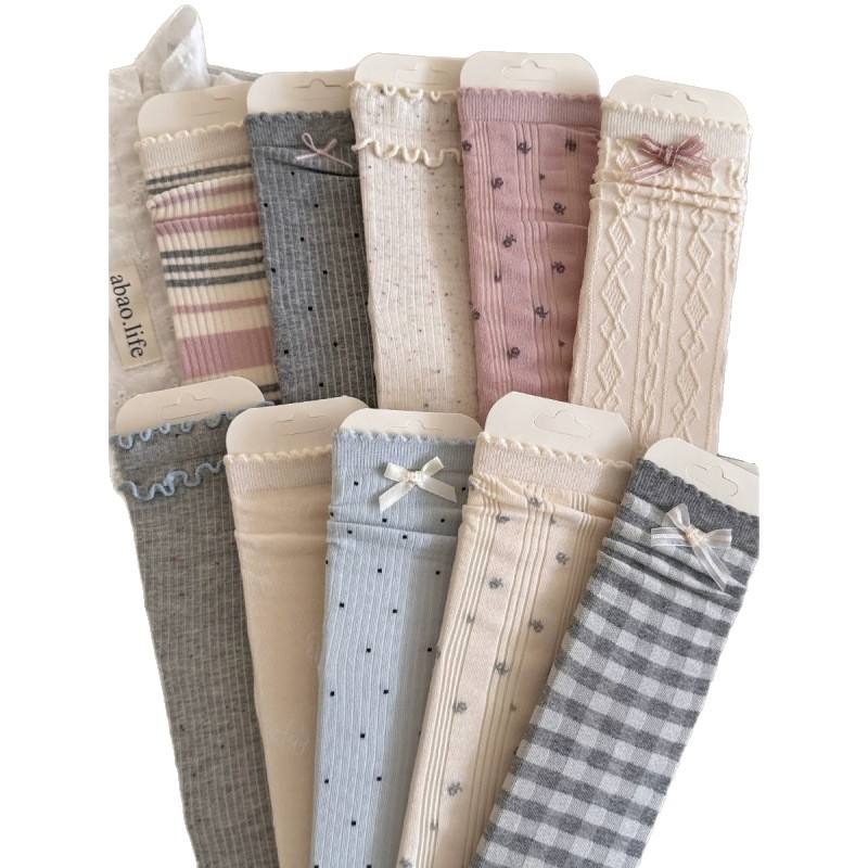 Chaussettes longues style ballet avec nœud décoratif, épaisseur moyenne, en fibre de polyester, chaussettes amples pour femme, pour le printemps et l'automne