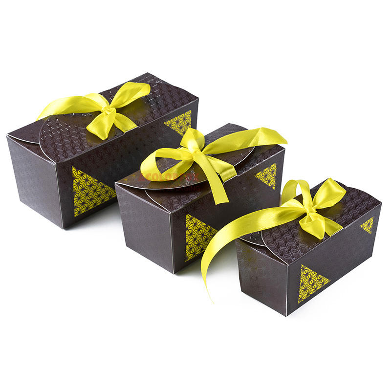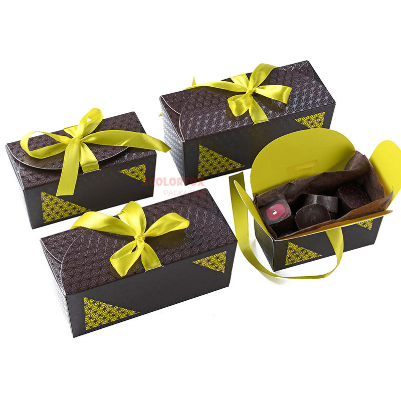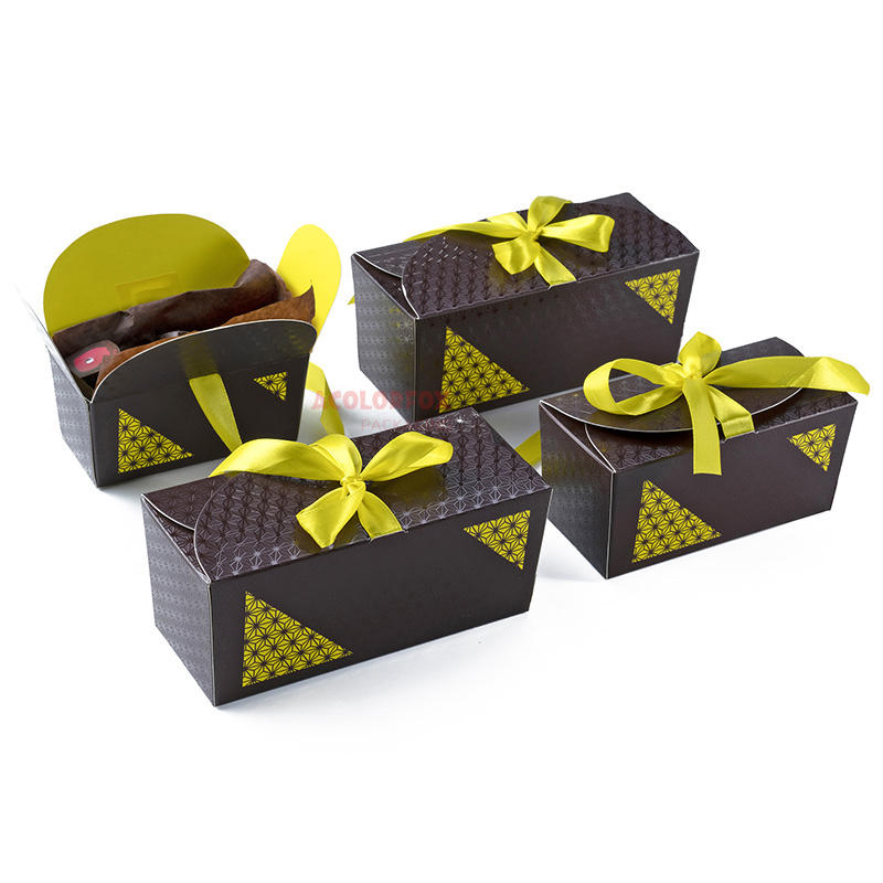 Boîte à chocolats Ballotin pour emballage alimentaire, pelliculage mat et gaufrage, matériaux recyclés, taille personnalisée, boîte pliante avec ruban