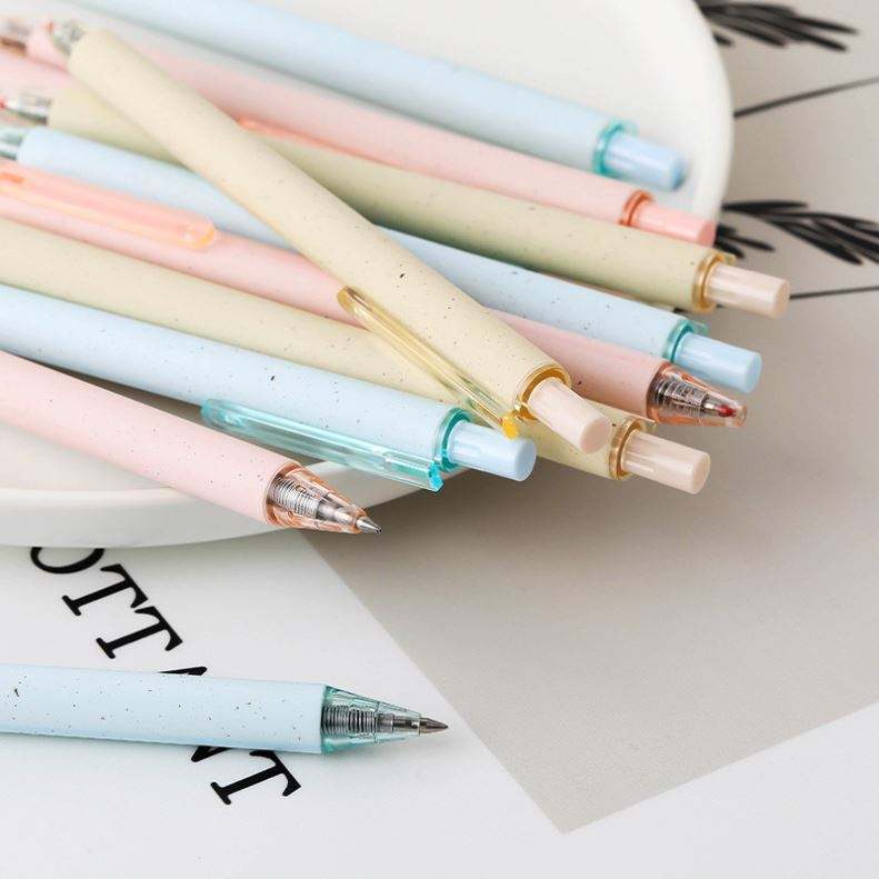 Stylo bille en paille de blé ABS, action facile par pression, pointe balle 1,0 mm, encre noire, écriture supérieure, couleur macaron