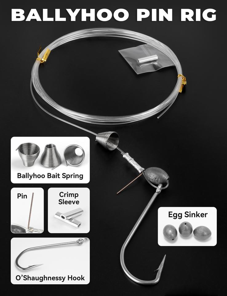 Ballyhoo Pin Rig avec chef mono ou fluorocarbone de 12 pieds pour appâts de pêche à la traîne en mer