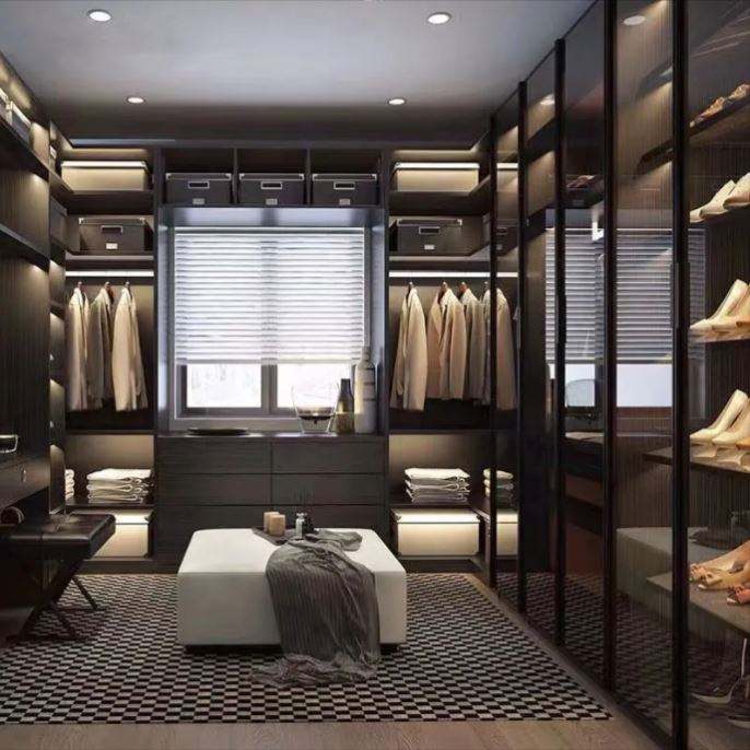 Balom 2025 Systems, meubles organisateurs modernes sur mesure, chêne, porte coulissante en verre, MDF, dressing en bois massif, armoire