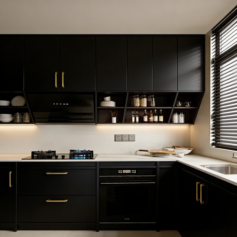 Accessoires:Dosseret, Tiroir panier, Coulisse, Robinet, Poignée et bouton, Charnière, Stockage à plateau tournant, Cabinet de base d'évier, Conteneur de déchets, Coup de pied, Boîtes de riz