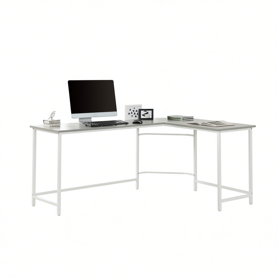 Bureau d'ordinateur Bambina, finition gris et blanc, surface métallique, forme en L, mobilier de bureau à domicile