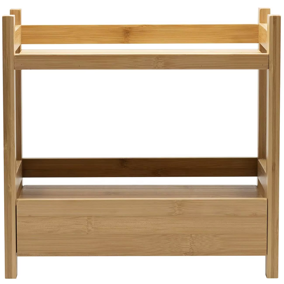 Étagère de comptoir à 2 niveaux en bambou avec tiroir caché, support multifonctionnel pour épices et organisateur de maquillage