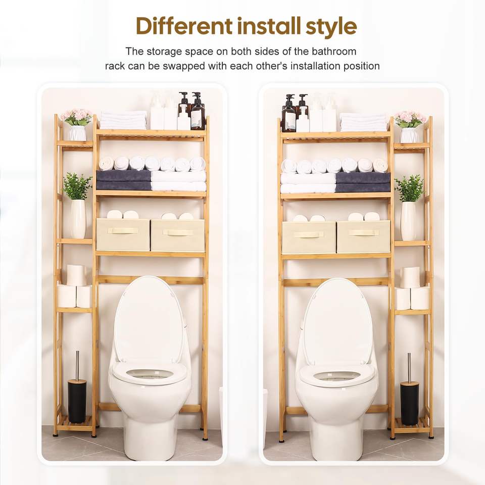 Étagère de rangement de salle de bain en bambou à 3 niveaux, support de rangement au-dessus des toilettes
