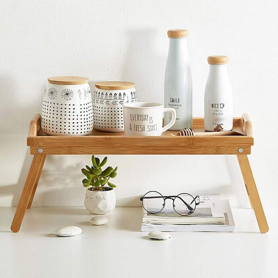 Table de lit en bambou, grands plateaux de petit-déjeuner 50x30CM avec pieds pliables, utilisation polyvalente comme table de lit