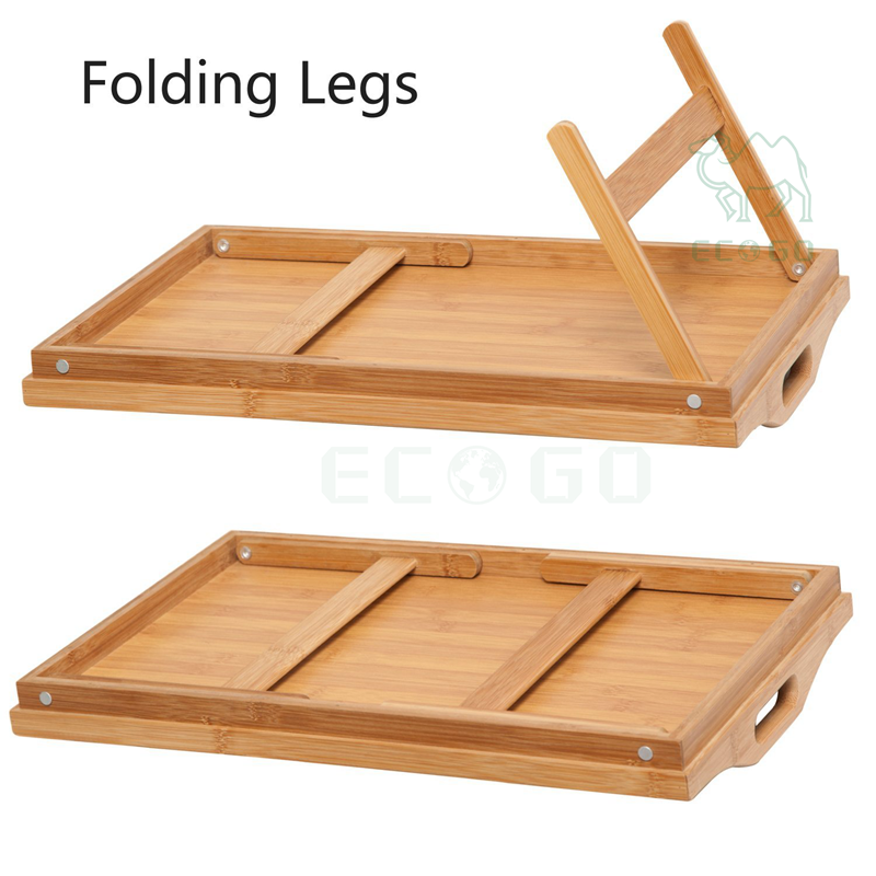 Table de plateau de petit déjeuner en bambou avec jambes pliantes