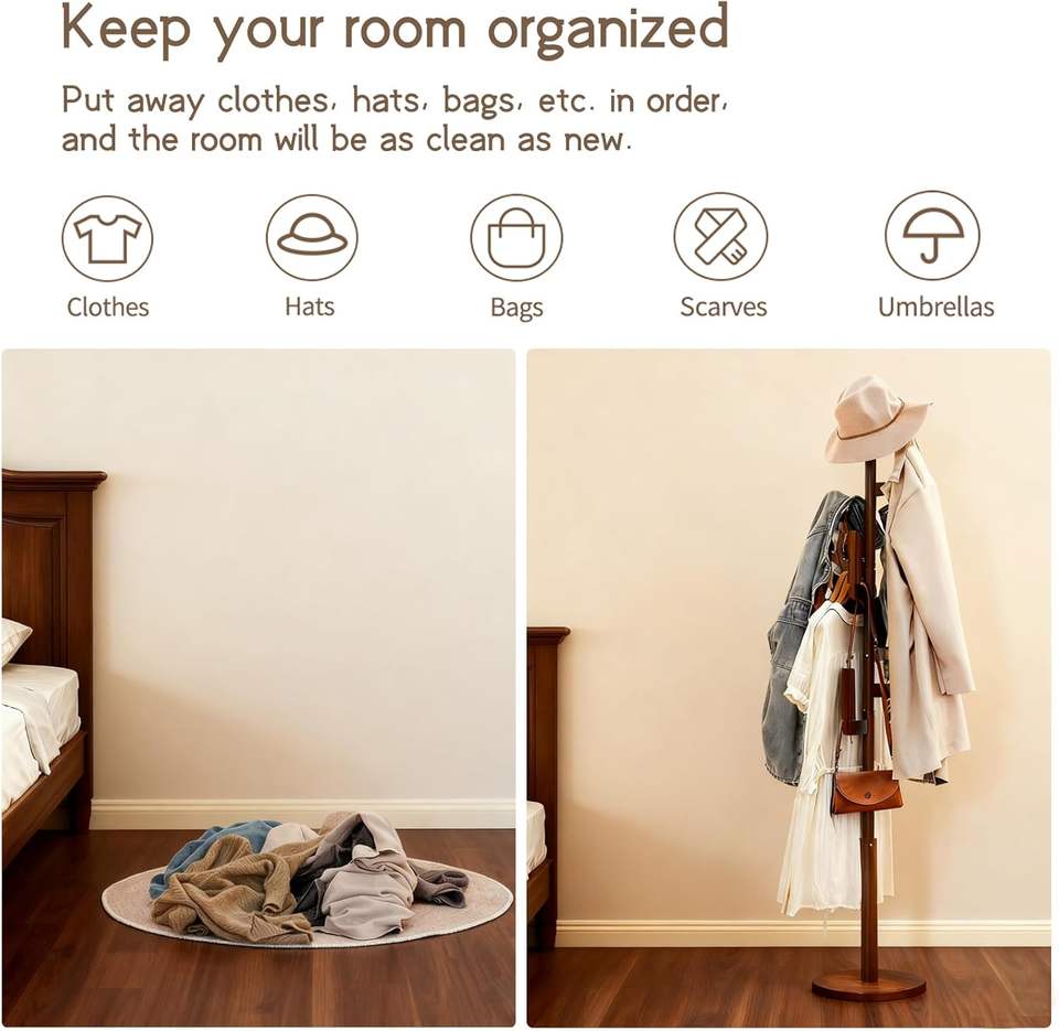 Nom du produit:Porte-vêtements en bambou et cactus, porte-vêtements autoportant avec 6 crochets