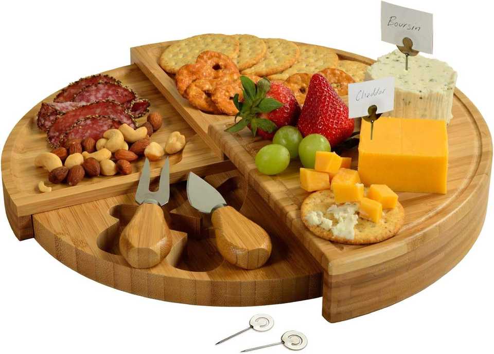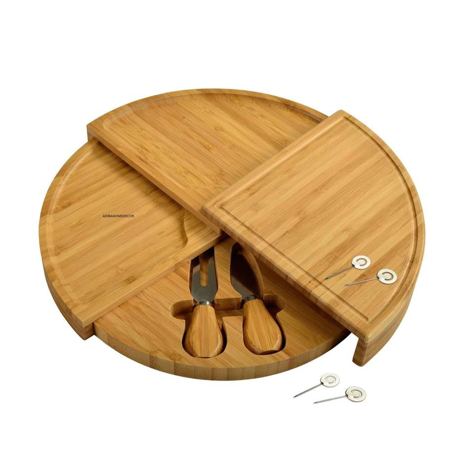 Planche à fromage en bambou avec compartiment dissimulé, plateau de service multifonctionnel pour pain, fruits et collations, idéal pour la cuisine, les fêtes et la décoration intérieure