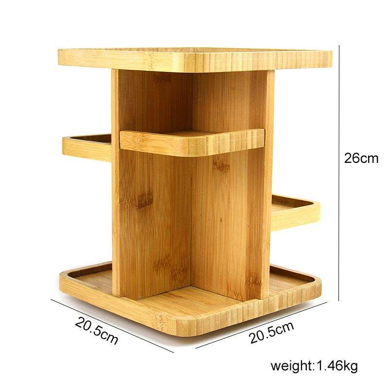 Carrousel de stockage multifonctionnel d'organisateur cosmétique en bambou pour le maquillage