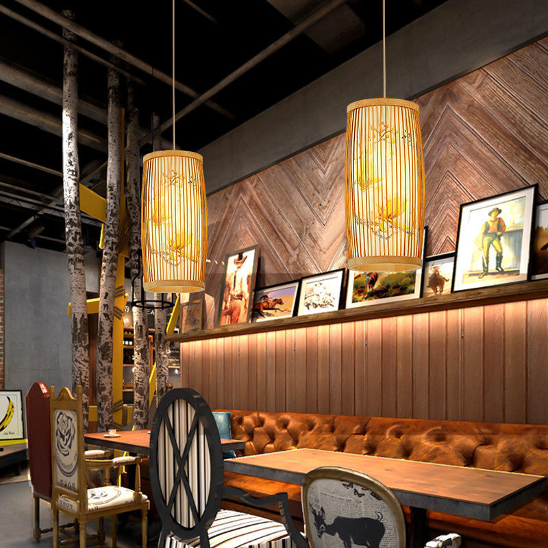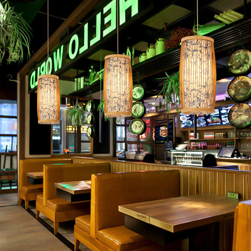 Lampe suspendue artisanale en bambou, forme de cloche, base d'ampoule E27, pour salon, éclairage de style Zen