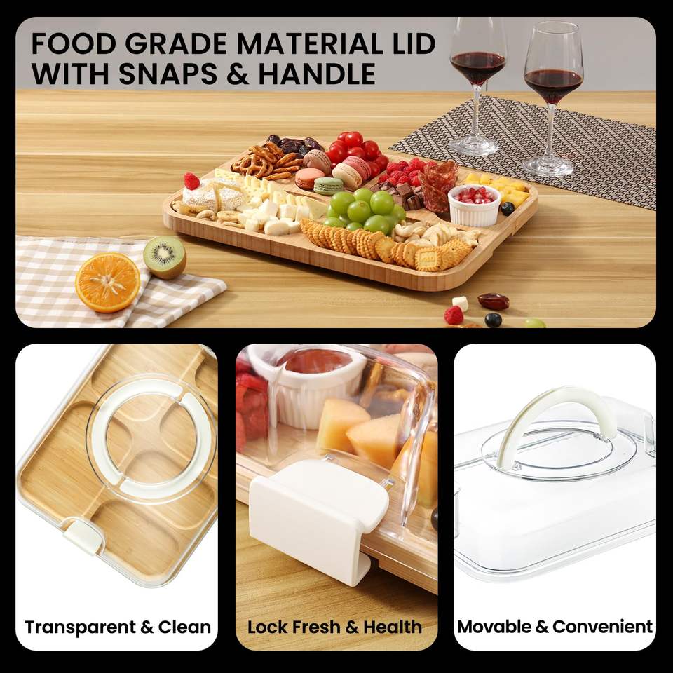 Planche à découper en bambou pour en-cas, plateau de service en bois de boucher pour la cuisine, planches à charcuterie avec couvercle, plateau à fromage, plateau à fruits