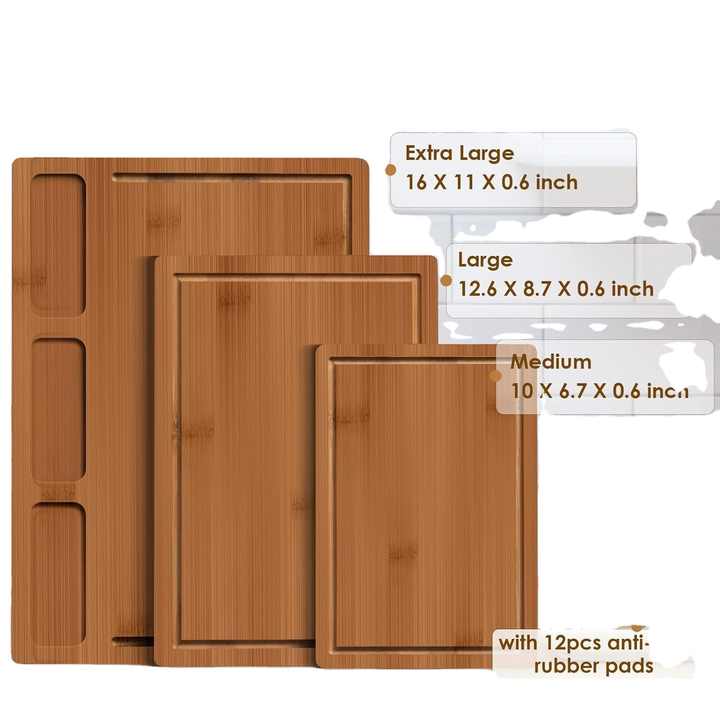 Planches à découper en bambou pour cuisine, (lot de 3) planche à découper de cuisine avec 3 compartiments intégrés