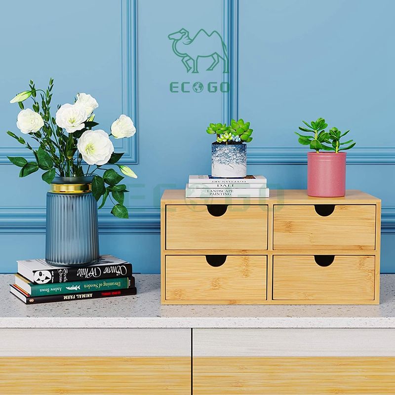 Organisateur de bureau en bambou Mini tiroir de bureau en bambou boîte d'organisation de stockage de table pour bureau maison articles de toilette fournitures