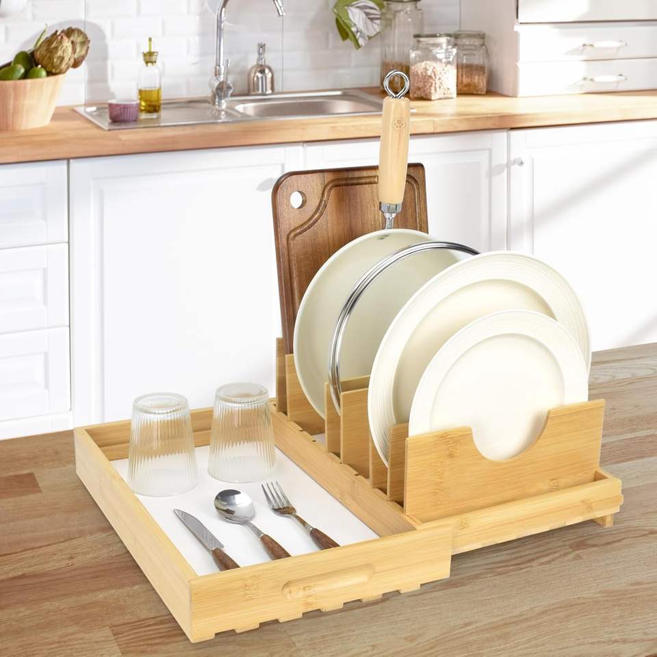 Séchoir à vaisselle en bambou avec tampon de terre à diatomées ultra absorbant