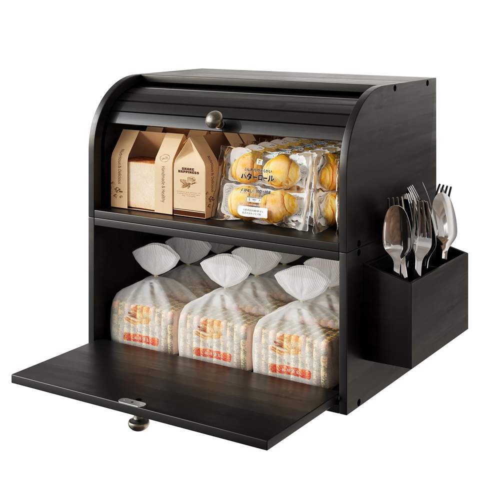 Nom du produit:Boîte à pain à double couvercle en bambou avec panier à couverts