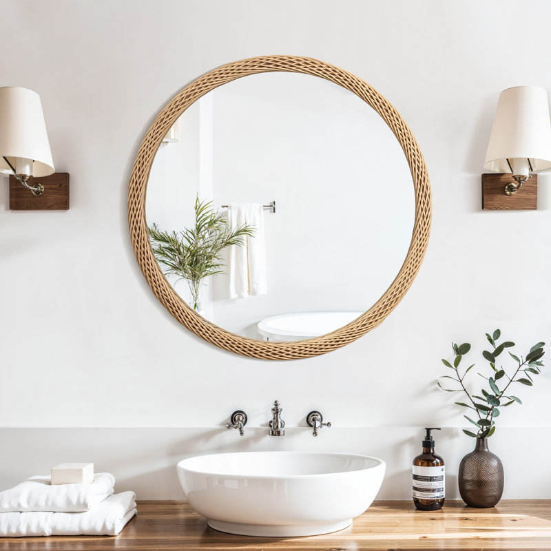 Cadre rond en bambou Accent miroir mural pour l'utilisation de la vanité