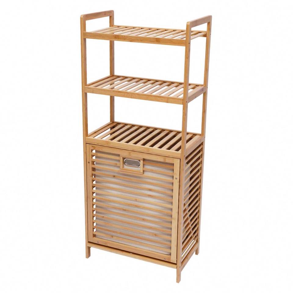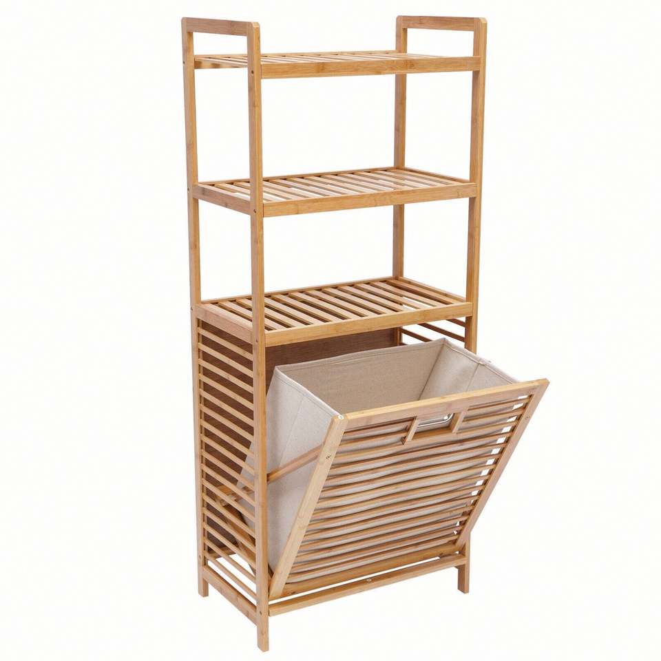 Bamboo Freestanding Laundry Hamper Basket with 3 Tier Storage Shelves Rack Stand