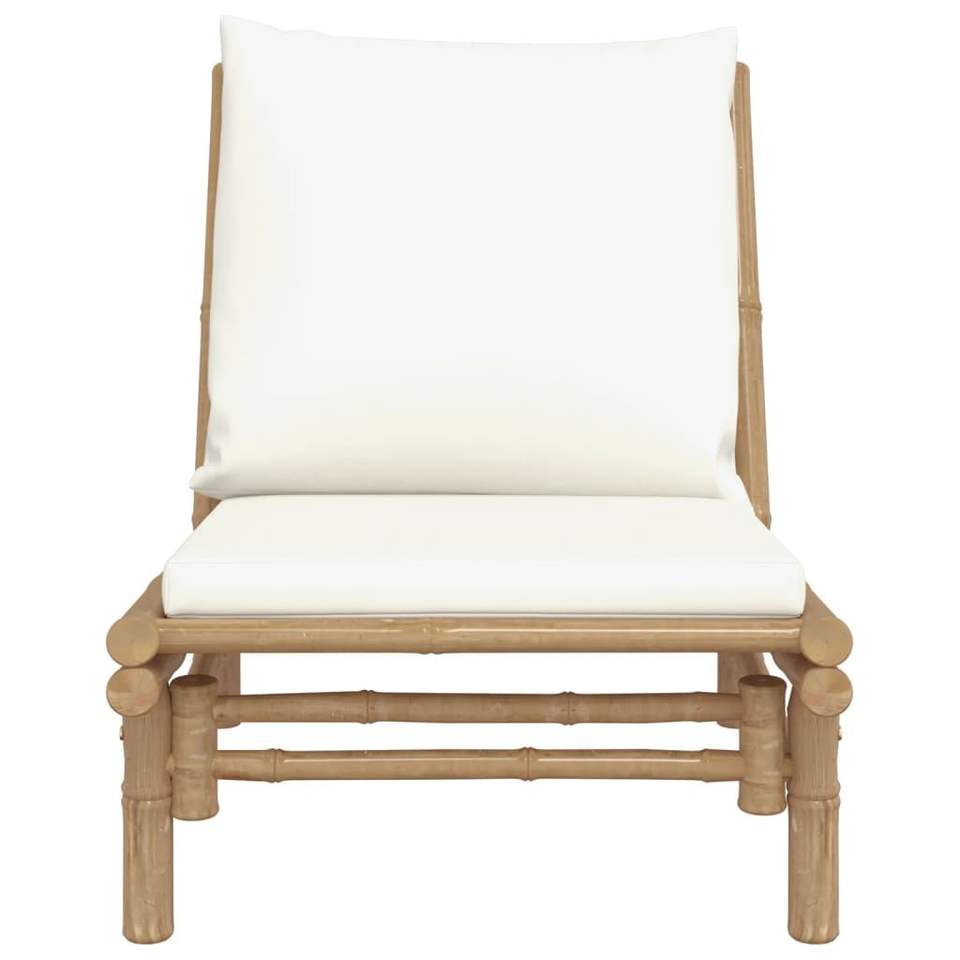 Ensemble de chaises de jardin en bambou avec coussins crème, mobilier d'extérieur au design minimaliste, ensemble de jardin 2 places