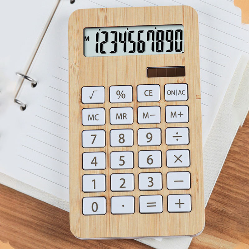 Calculatrice portative en bambou à 12 chiffres, écran large et calculatrice en bois pour étudiants, bureau, finance et apprentissage
