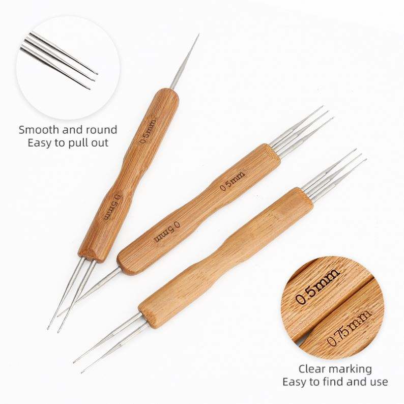 Accessoires tressés à double extrémité avec poignée en bambou, crochet, outil, crochet