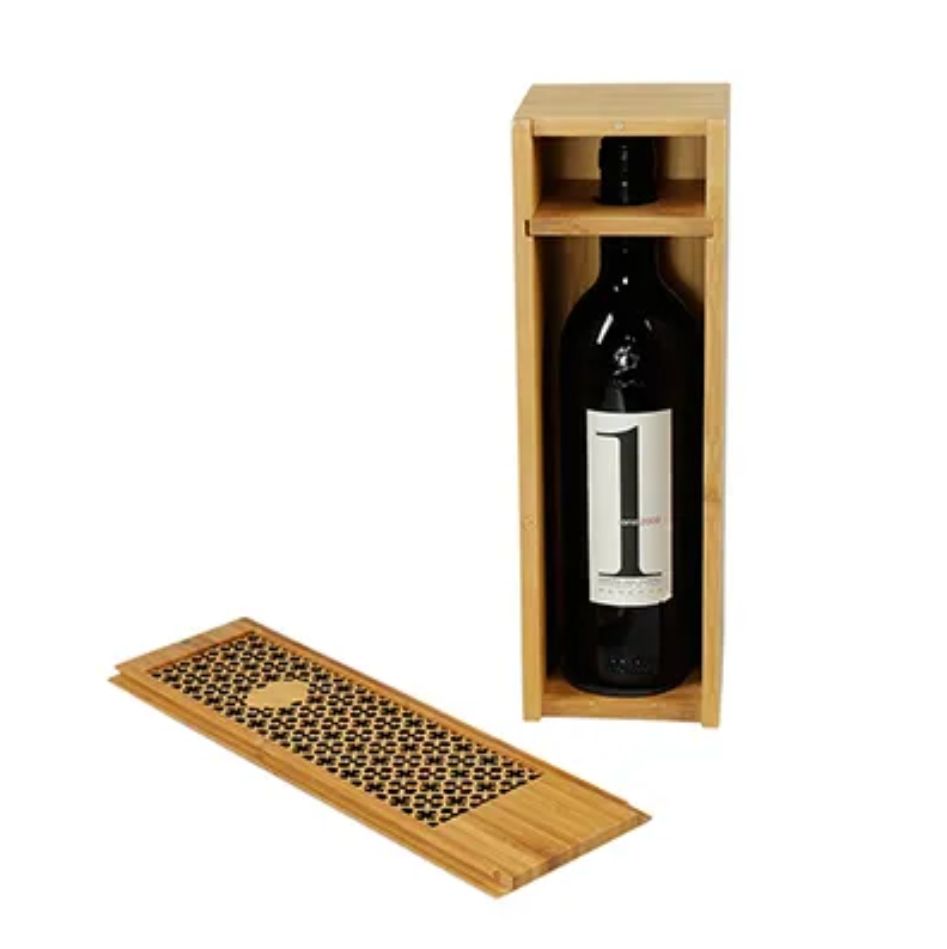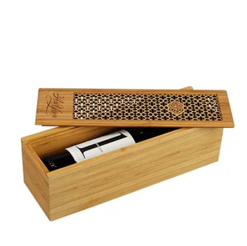 Boîte à vin rouge rectangulaire de luxe en bambou fait main avec couvercle coulissant gravé – Cadeau personnalisé en bois massif 100 % – Vente chaude en gros