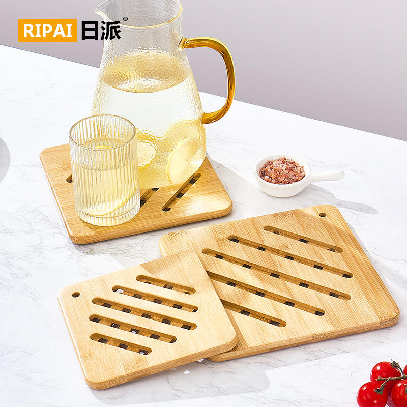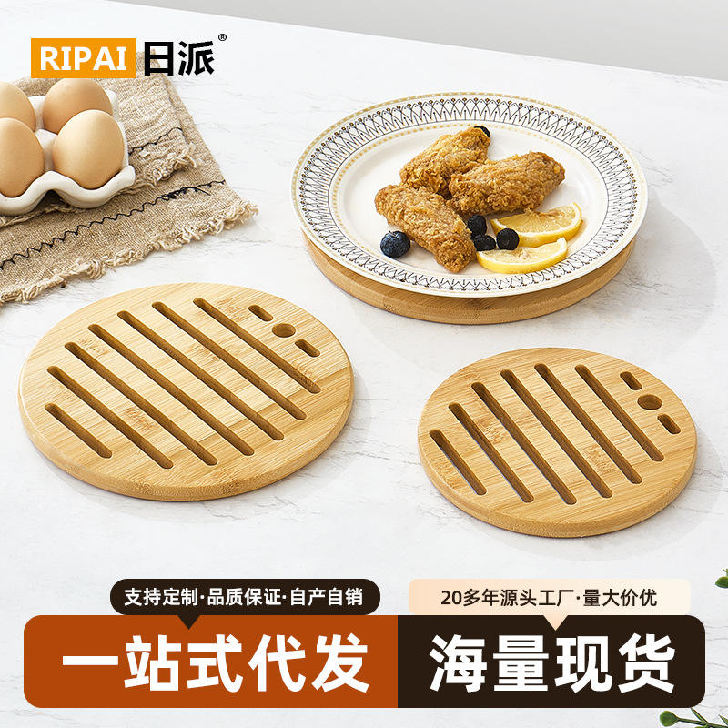 Tapis de table en bambou résistant à la chaleur, dessous de plat rond en bois, tapis isolant de cuisine, couleur unie