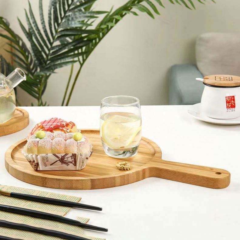 Bambou Hôtel Angle Droit Plateau À Thé Jetable Fast Food Double Oreilles Plateau De Fruits Manche En Bois Gravé Restaurant Ménage Assiette