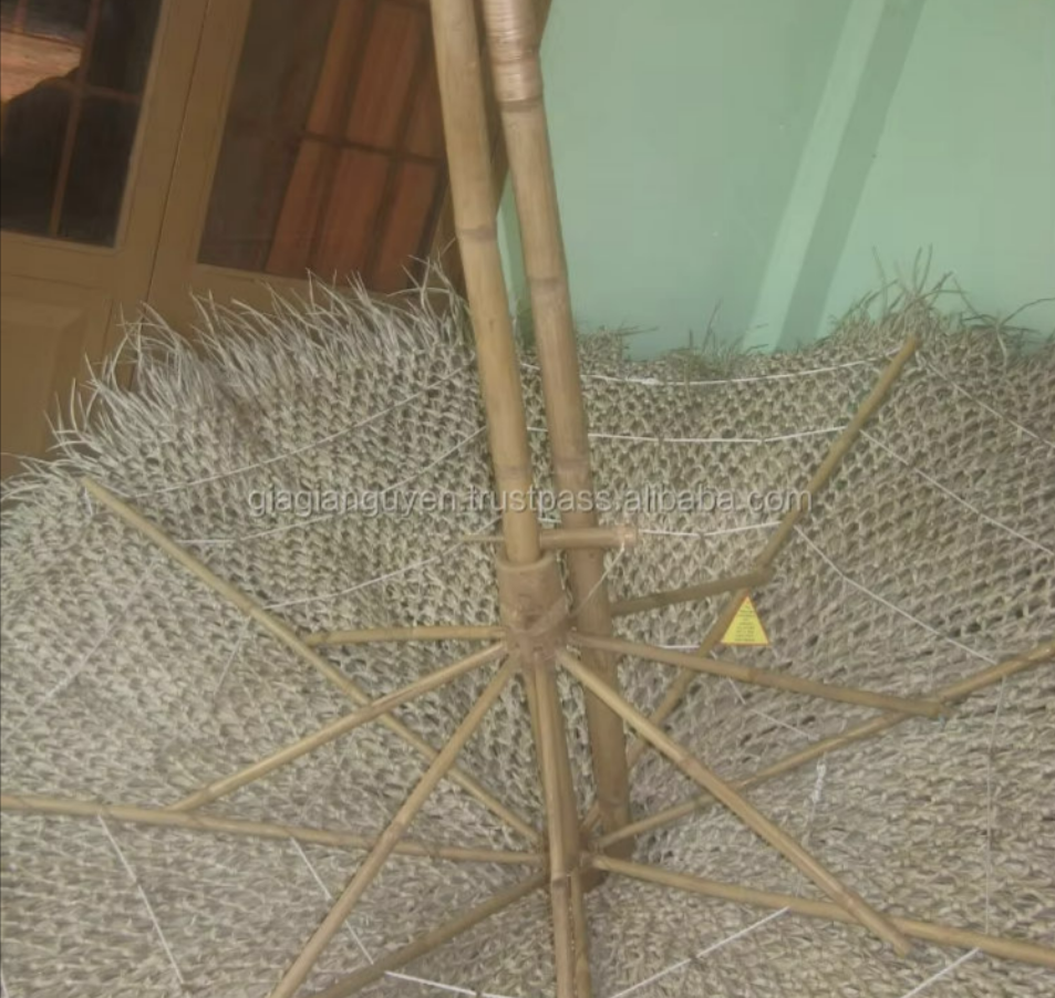 Couverture de parapluie pliable gonflable en bambou pour la plage en plein air chaume entière tissée étanche avec pied pour l'exportation de l'utilisation de l'école à manger