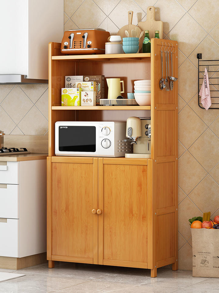 Étagère de rangement de cuisine en bambou, support de four à micro-ondes multi-niveaux sur pied, meuble de rangement multifonctionnel moderne, buffet