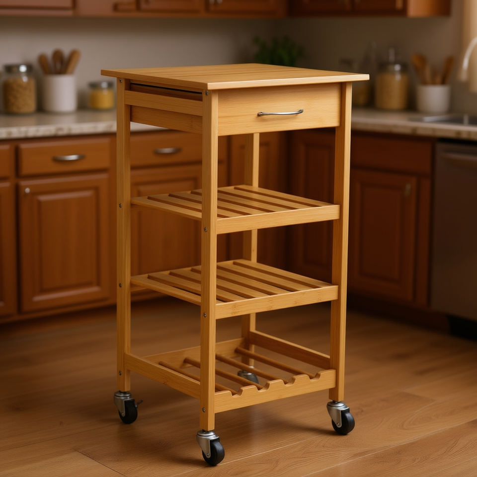Chariot de rangement de cuisine en bambou, 4 étagères avec tiroir, autoportant, multifonctionnel pour la cuisine