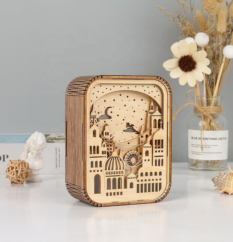 Lampe en bois sculpté 3D en bambou avec peinture lumineuse en bambou, lampe LED en bois, sculpture sur papier personnalisée, lampe de nuit laser