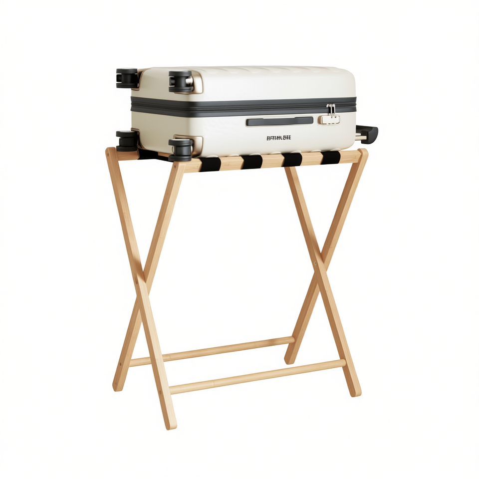 Porte-bagages en bambou 27 x 15 x 22,8 pouces, solution de rangement durable et écologique pour mobilier d'hôtel, design minimaliste