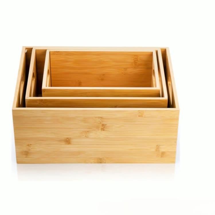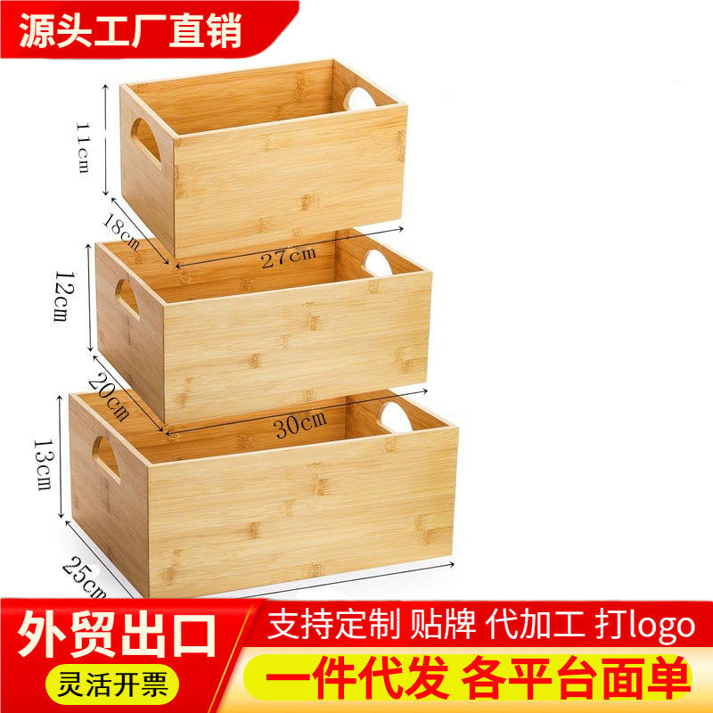 Ensemble de boîtes de rangement multi-usages en bambou, boîte de rangement portable pour la maison avec poignée, organisateur de type tiroir, impression de logo