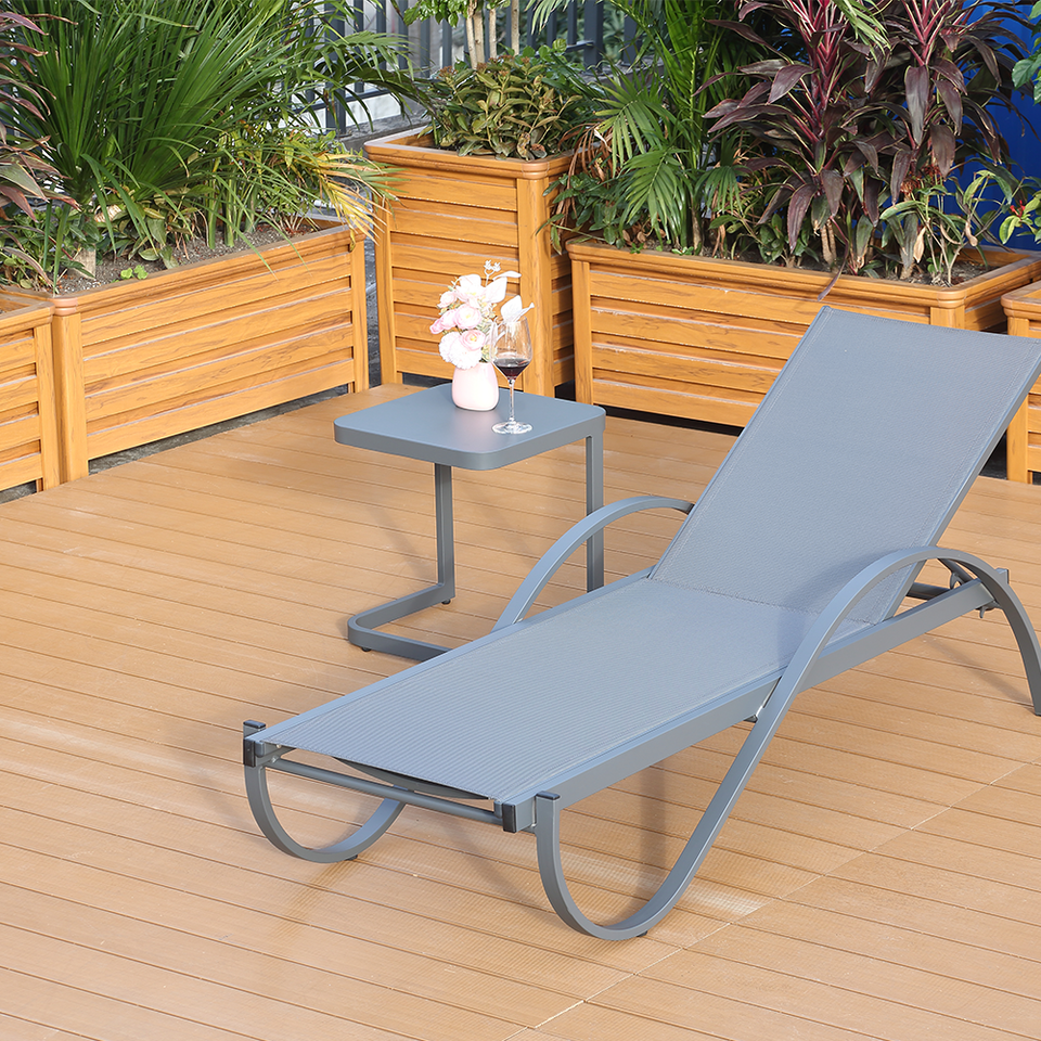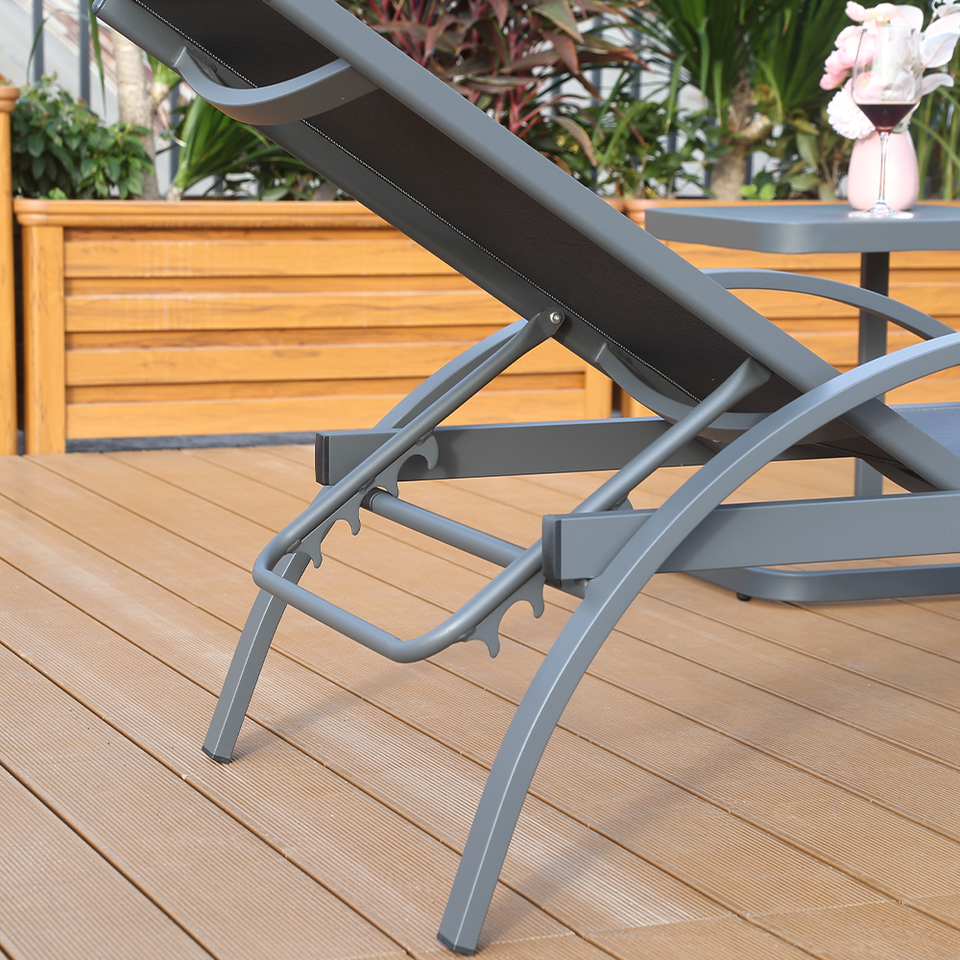 Ensemble de détente d'extérieur en bambou, chaise longue pliable en maille portable + table ronde à angle réglable pour la cour, bain de soleil/lecture