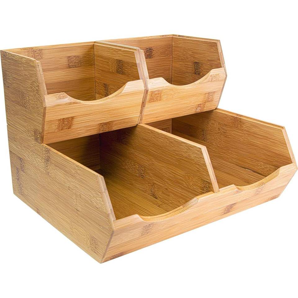 Bacs de rangement coulissants en bambou pour garde-manger, lot de 3, pour organiser les légumes (pommes de terre, oignons), élégants et pratiques pour le stockage alimentaire