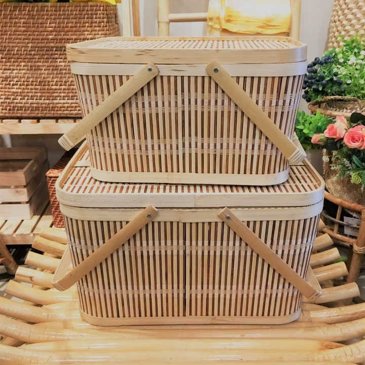 Bamboo Picnic Basket Handwoven from Eco Bamboo Perfect for Camping Meals and Seaside Picnics in Vietnam