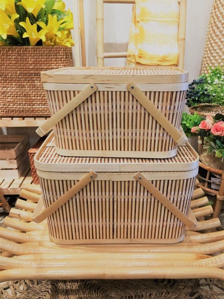 Bamboo Picnic Basket Made of Natural Bamboo for Park Lunches and Summer Garden Gathering Food Storage Vietnam