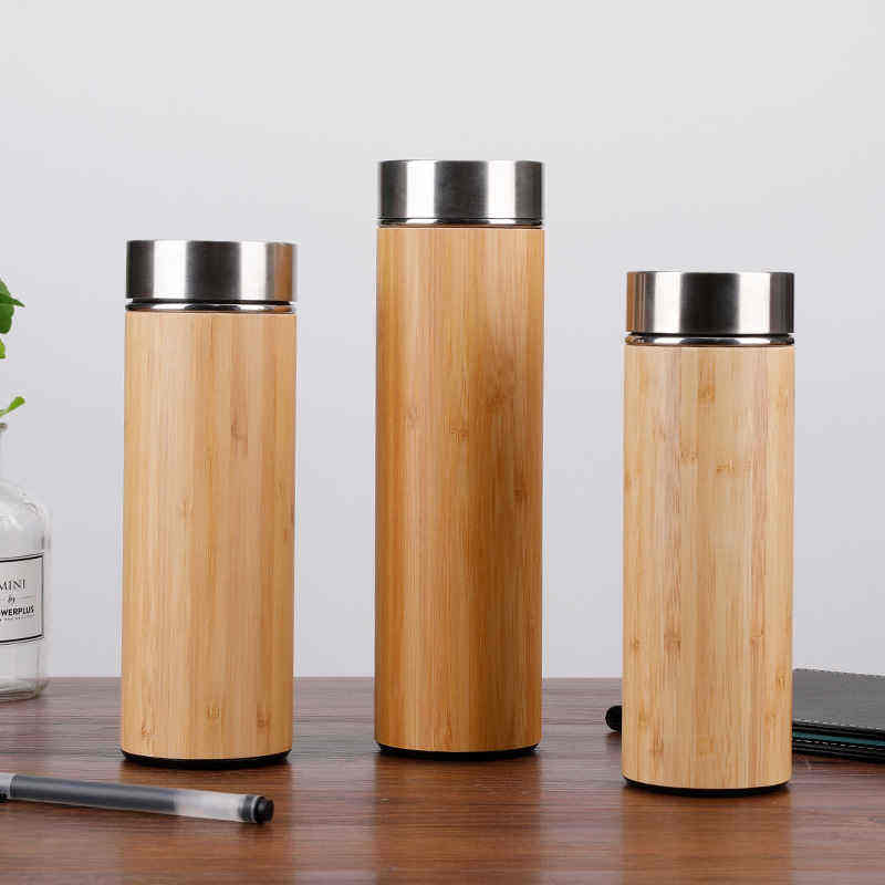 Gobelet isotherme en acier inoxydable avec coque en bambou, anti-fuite, design moderne, vente en gros, bouteille d'eau, gravure laser
